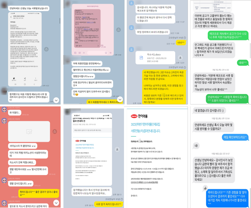 수백명 이상 합격 사례 보유 – 대기업/공기업/공무원 및 병의원 / 자소서, 경력기술서, 직무수행계획서 첨삭대필 작업드리고 있습니다.  (현대자동차, 기아자동차, 삼성전자, SK하이닉스, 포스코, 현대로템, 중공업, 건강보험공단, 한국전력, 한국도로공사, 각종 병원, 공무원 등 매년 합격 보유)