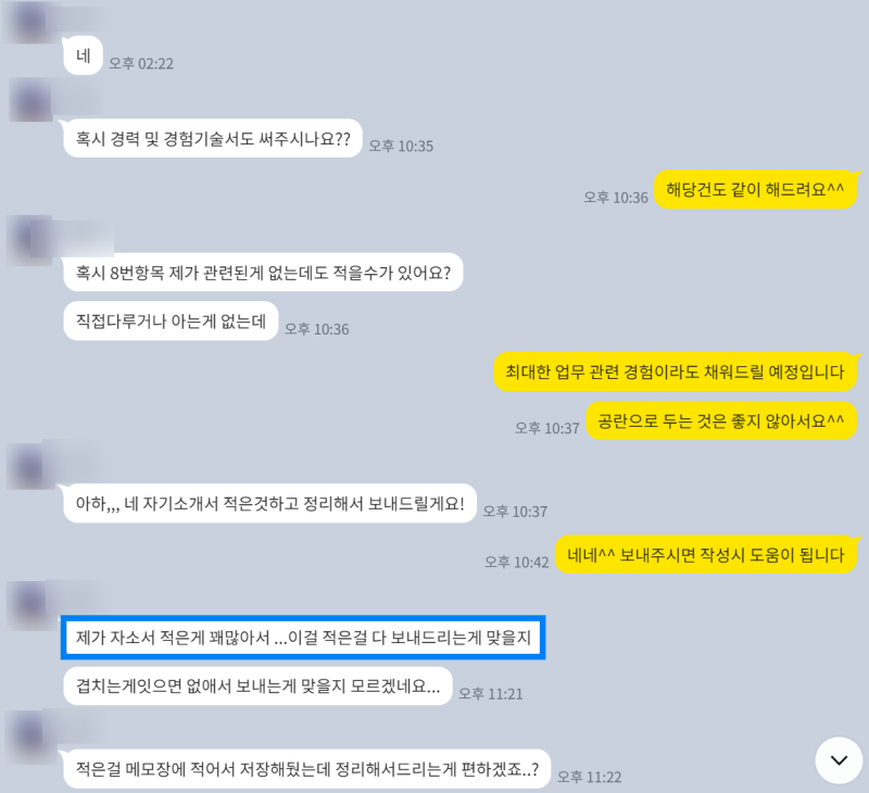 • >> 자소서 초안 작성 및 1차 피드백 (or 첨삭/대필 진행)