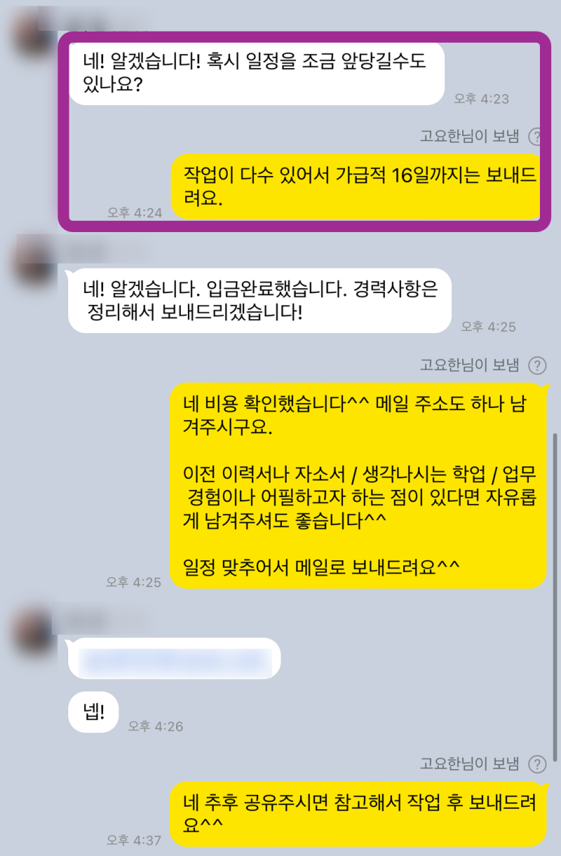 2단계 >> 이력서 및 자소서 첨삭/대필 의뢰
