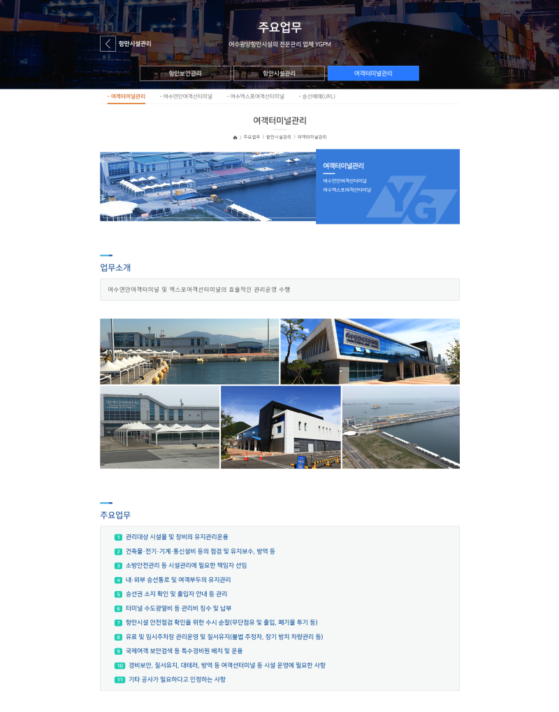 항만 운영 및 관리: 여수광양항의 효율적인 운영을 통해 국내 수출입 물동량 처리의 핵심 기지 역할을 수행합니다.