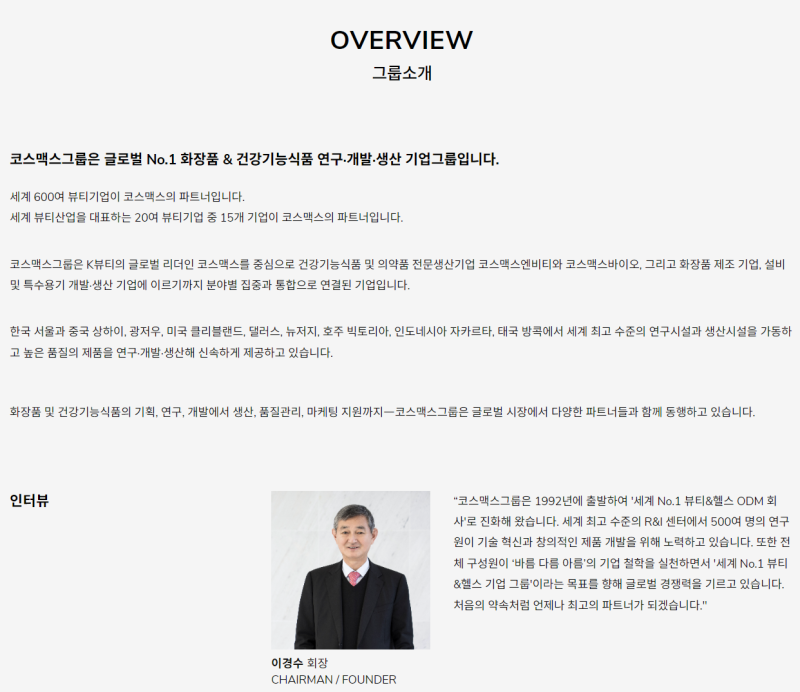 주요 사업: 화장품 ODM (기초, 색조, 선케어, 헤어&바디 등)