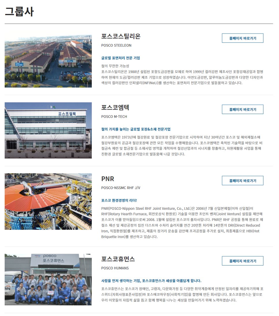 주요 사업: 철강 제조, 건설, 에너지, ICT