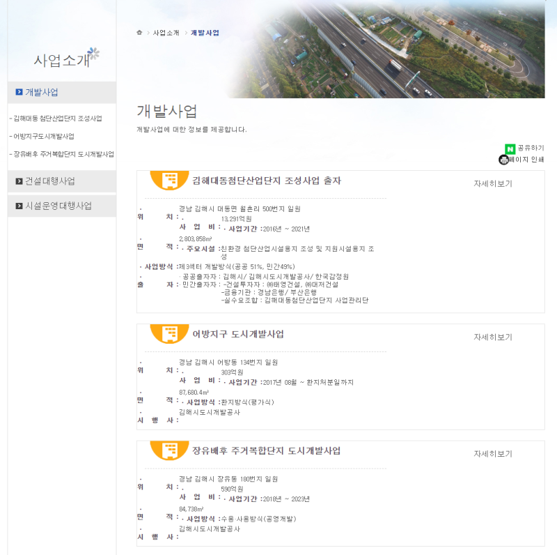 도시개발사업, 도시재생사업 등 각종 사업 계획 및 관리