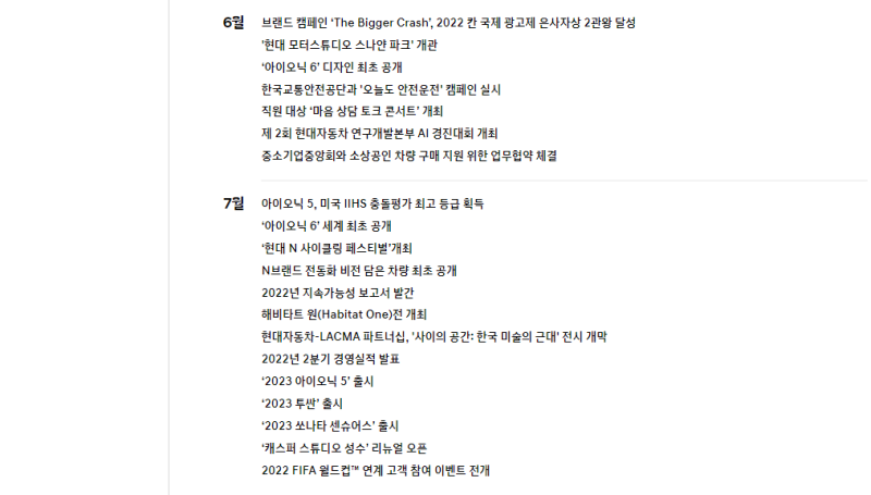 • 전동화: 전기차, 수소전기차 등 친환경차 개발 및 생산에 집중합니다.