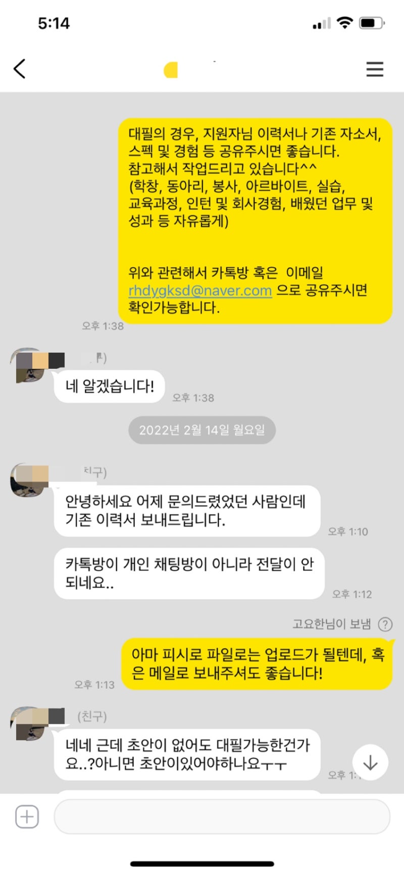 • 자기소개서 대필: 완벽한 자기소개서를 처음부터 끝까지 작성해 드립니다.