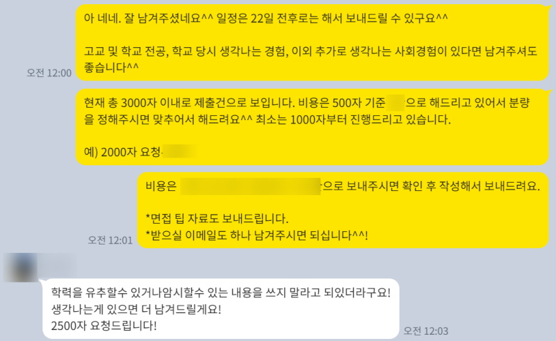 - 자기소개서 대필: 처음부터 자소서 작성 대행