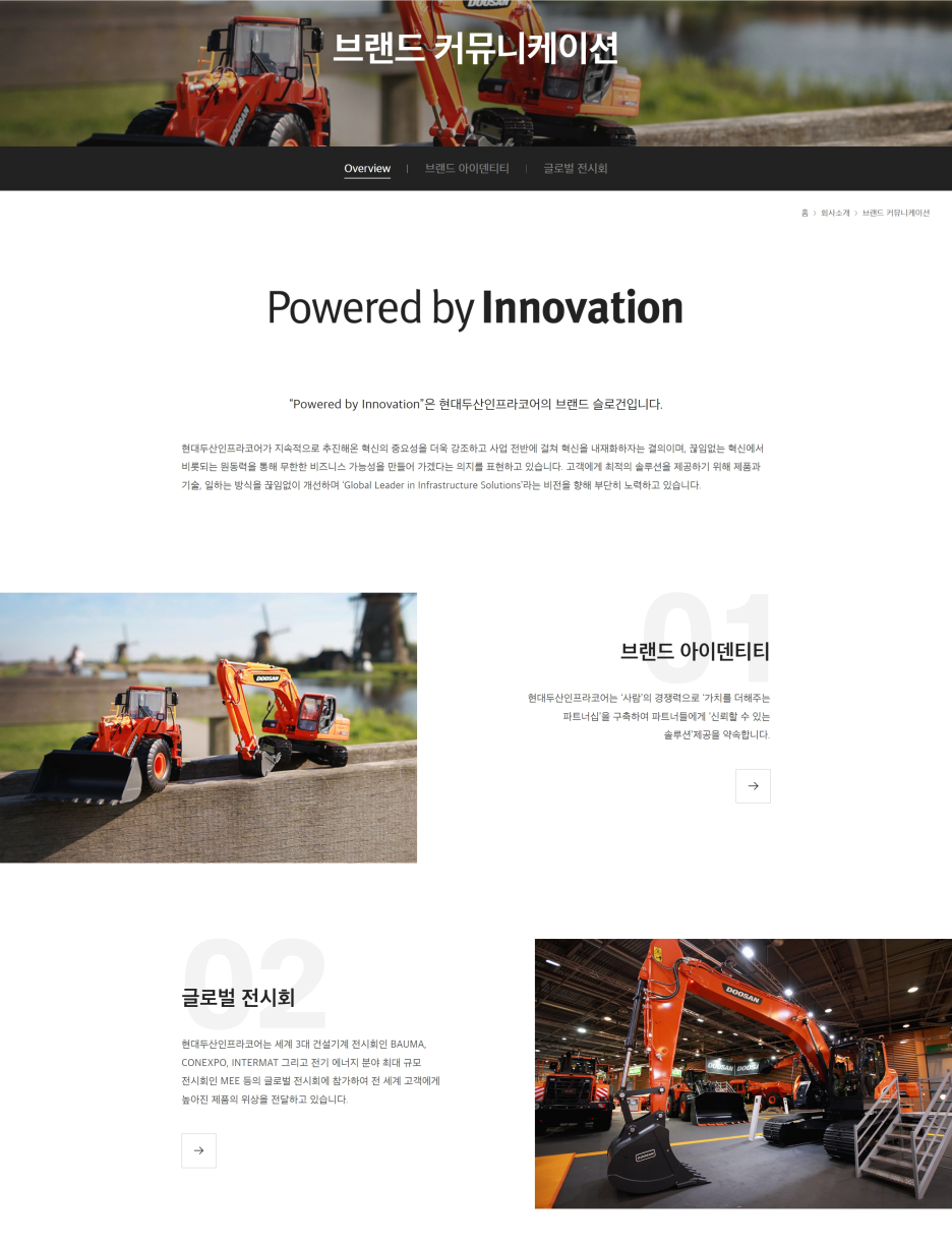 • 주요 사업: 건설기계 (굴착기, 휠로더, 굴절식 덤프트럭), 엔진, 어태치먼트