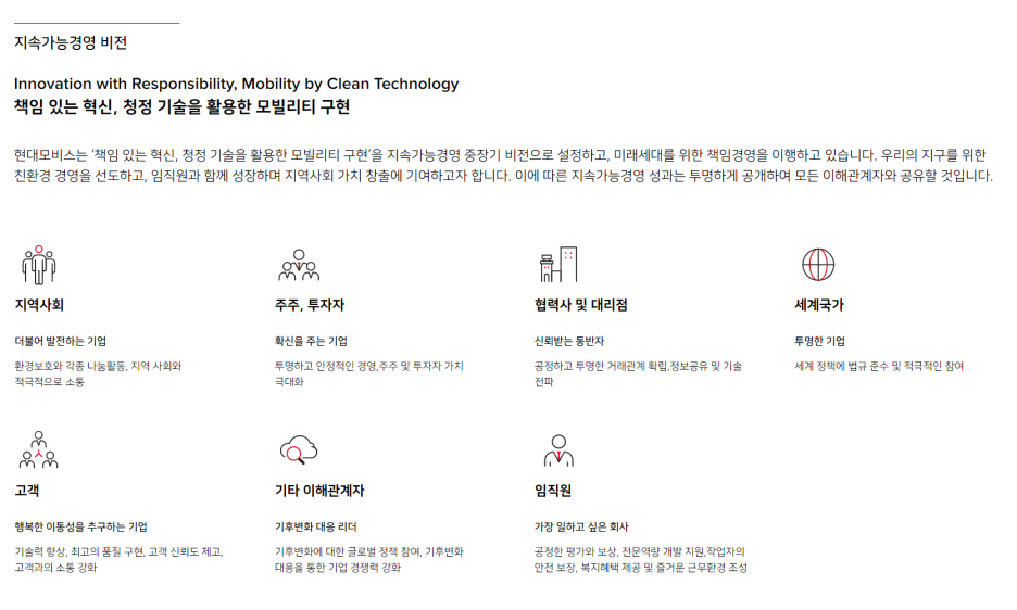 • 핵심 가치: 고객 최우선, 도전적 실행, 소통과 협력, 인재 존중, 글로벌 지향