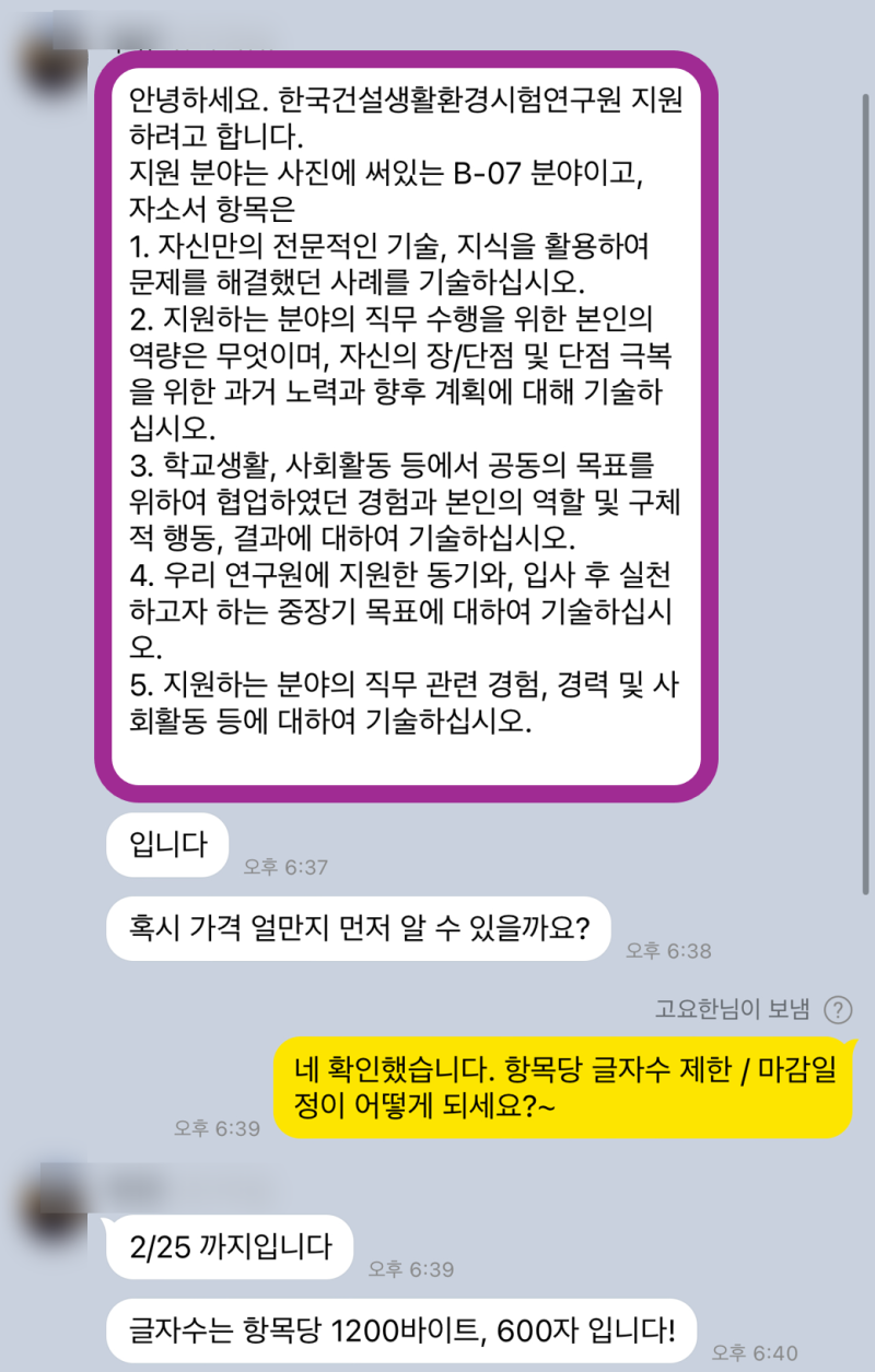 KCL 한국건설생활환경시험연구원 합격 자소서 첨삭 후기: 공공기관 연구원 합격 비법 공개!