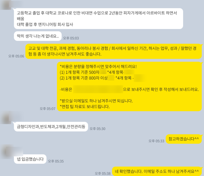 1:1 맞춤형 자소서 첨삭 및 대필